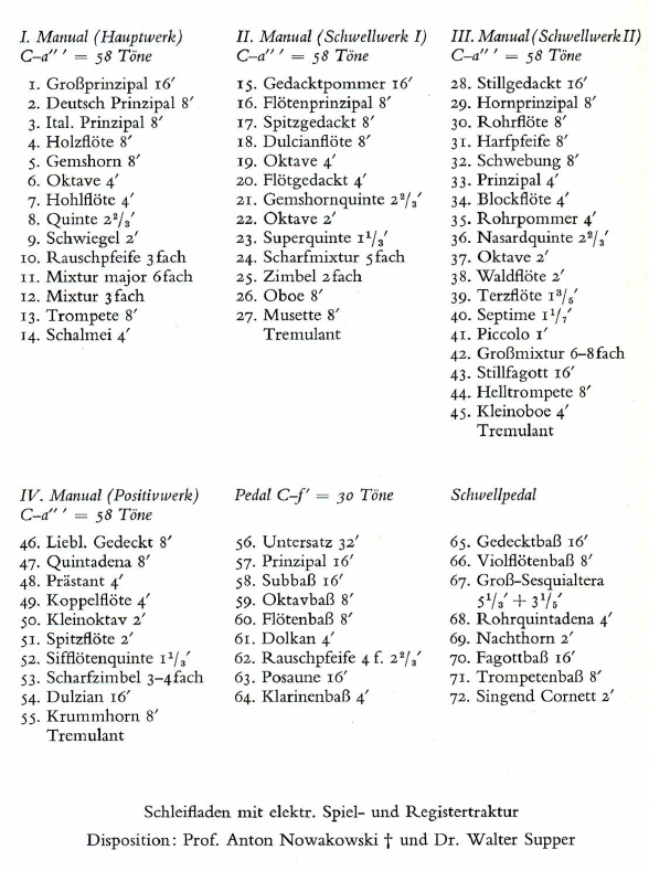 Als der damals unbekannte Komponist Olivier Messiaen (1931-1992) im April 1952 erstmals nach Stuttgart kam, um dort in der Villa Berg die Uraufführung seiner Komposition Livre d’orgue vorzubereiten, traf er auf eine Orgel, die mit 72 Registern verteilt auf vier Manualen und Pedal, wohl eines der umfangreichsten neuen Orgelwerke in Deutschland nach dem Zweiten Weltkrieg war.