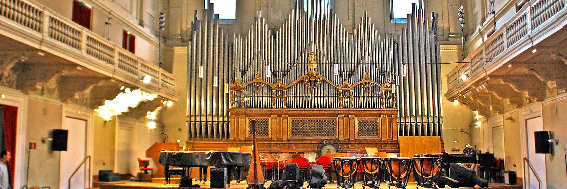 (ANM03, dieser Umstand ist uns bei der 4manualigen Tamburini-Orgel in Santa Cecilia unmittelbar aufgefallen: die Orgel mit rund 75 Registern basiert im Hauptwerk auf einem 8'Register, alles andere, wie der Prinzipal 16' sind so schwach intoniert (Winddruck um 48mmWS) dass sie nicht als Basis des Manuals erkannt werden, sondern eher, als forciertes Bordunregister)