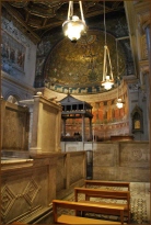 San Clemente gibt dem Besucher Gelegenheit zu einer dreifachen Reise in die Geschichte. Von der Straße Via San Givoanni in Lateran, in der wir rund 4 Monate gelebt haben, das übrigens ein Viertel ist, welches Nero 64 n Chr. anzünden liess, gelangt man in die Oberkirche aus dem 12.JH, die mit einem großartigen Mosaikboden belegt ist. Von dort aus geht es runter zur Unterkirche des 4.JH die auf antiken Bauten ruht, unter anderem auf dem Mithräum, das ebenfalls besichtigt werden kann, wenn man nocheinmal eine Schicht tiefer geht.