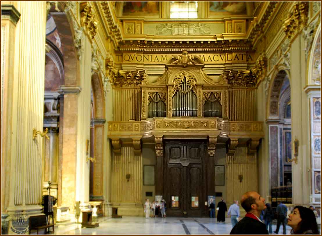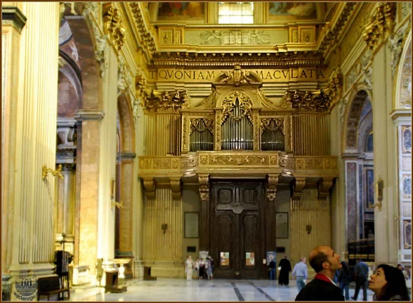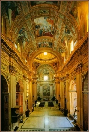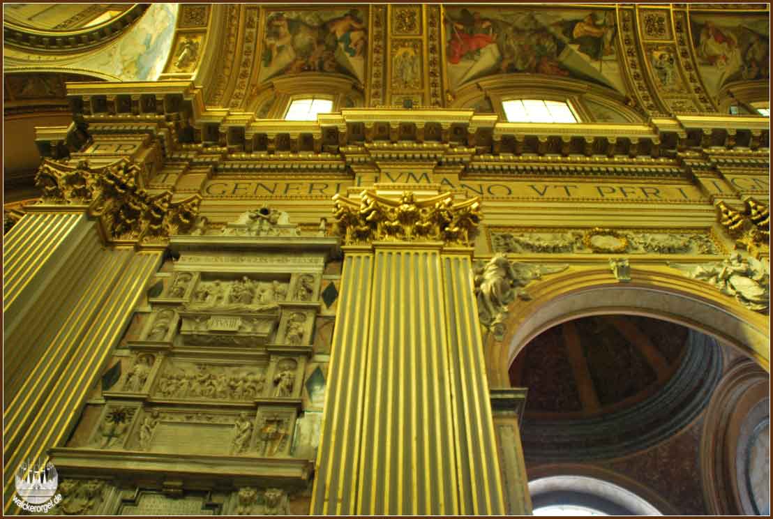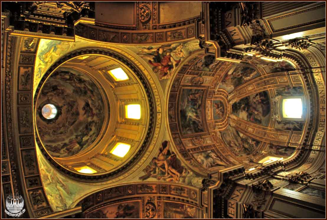 Die Kirche ist berühmt für ihre wunderschöne Kuppel, die in den nachfolgenden Fotos mehrfach gezeigt wird. Diese Kuppel ist nach dem Petersdom die größte in Rom. Sie wurde 1622-25 von Carlo Maderno errichtet und von Lanfranco mit Fresken ausgemalt.
