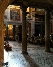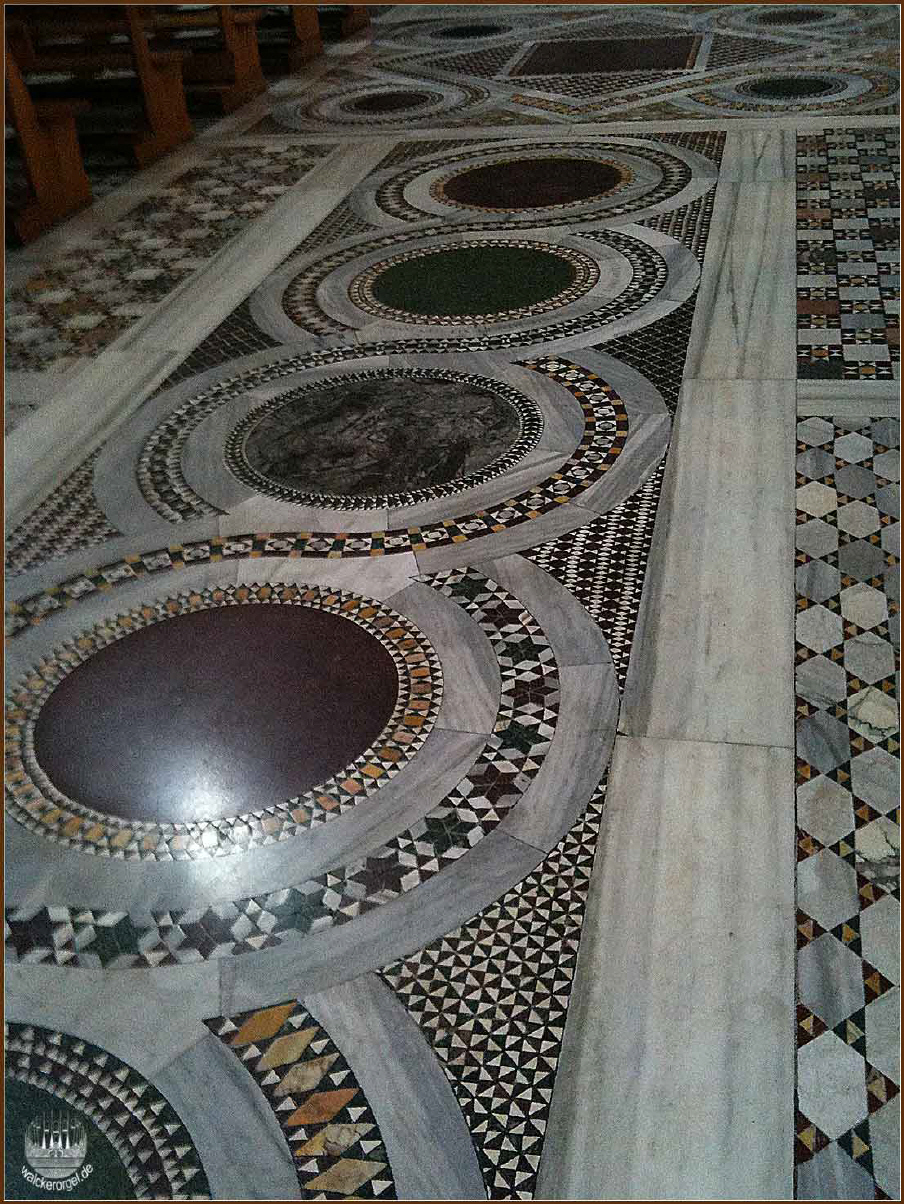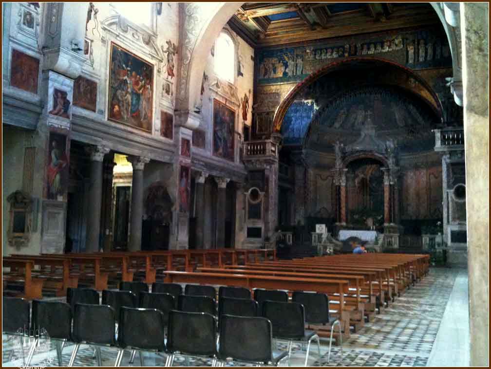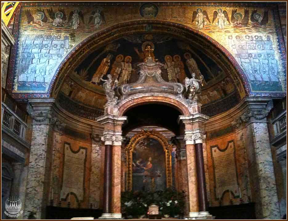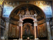 Byzantinische Künstler verzierten den Bau, der unmittelbar nahe der Santa Maria Maggiore-Kirche liegt, sehr versteckt in einem Seitenweg, aber doch leicht auffindbar. Ich musste zweimal vorbei kommen, um die Kirche geöffnet zu finden. Das hat sich wahrlich gelohnt. Es ist eine Kirche die mir mit schönen, ruhigen Fresken und natürlich den berühmten Mosaiken, sehr viel Lebendigkeit gezeigt hat. Hoch oben in Apsis und Chor befinden sich diese bekannten Mosaiken. In einer Seitenkapelle finden sich weitere schöne Mosaiken. In einem Grabraum unter dem Altar befindet sich ein Sarkophak der schön mit Steinen verziert ist und darin soll Theodora, die Mutter des Papstes Paschalis liegen, sowie Teile des Kreuzes Christi.