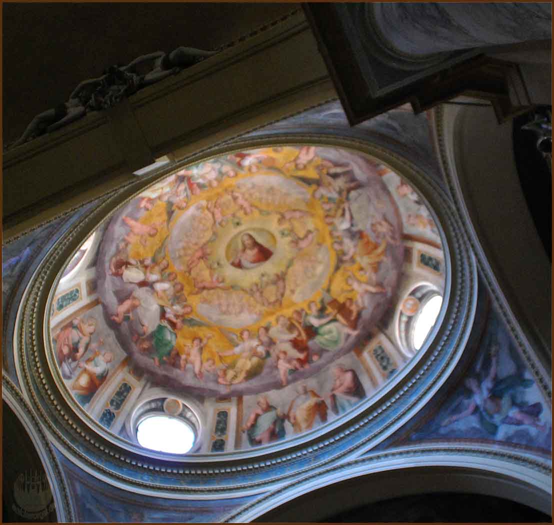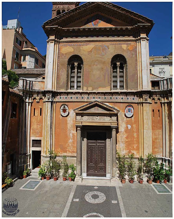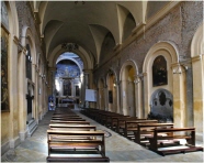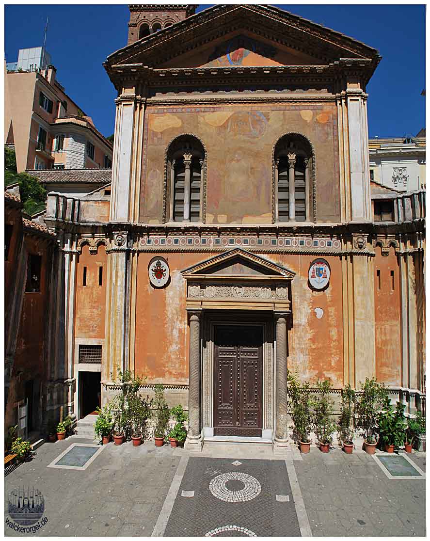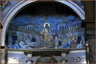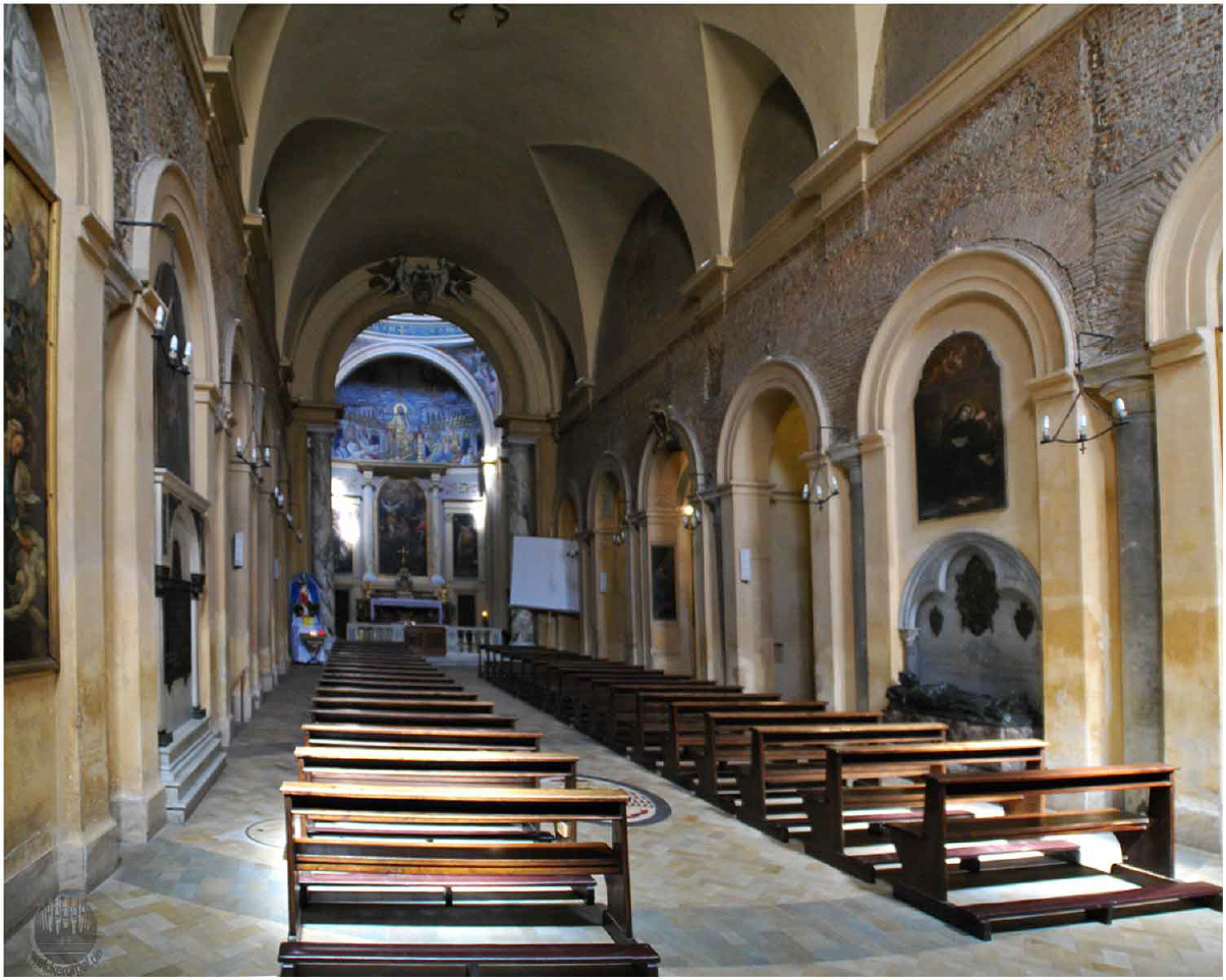 Die Fassade aus dem 19.JH ist mit einem Fries aus dem 8.JH bestückt. Das Apsismosaik stammt aus dem 4.JH und weist viele Elemente nichtchristlicher Kunst auf (die Apostel als Senatoren in Togen gekleidet).