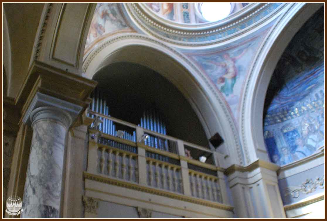 Die Kirche besitzt eine wundersame Lichtaura - und ein kleines, freiprospektrisches Orgelwerkchen, das uns schräg anlugte (aber nichts sagte).