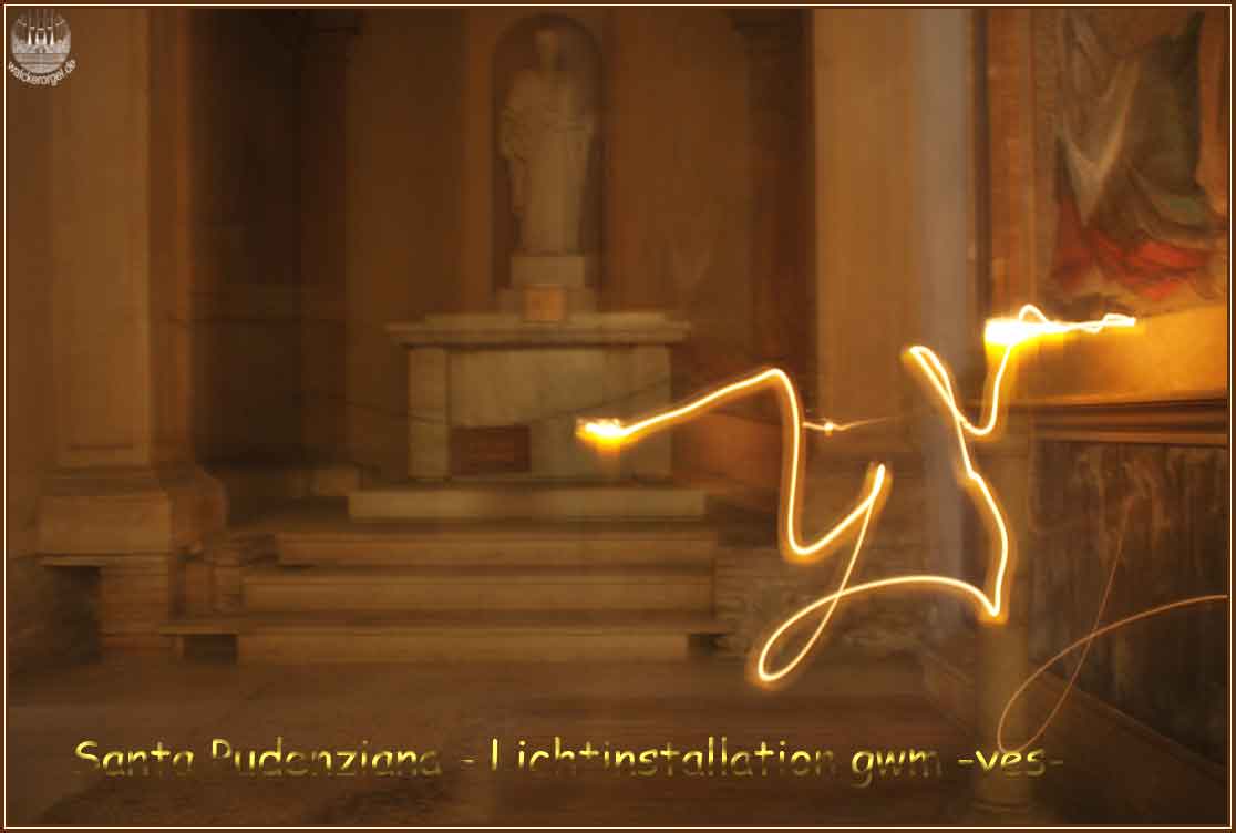 Im 1JH lebte ein römischer Senator an dieser Stelle namens Pudens, der den heiligen Petrus bei sich aufgenommen haben soll. Im 4.JH wurde innerhalb einer Therme an dieser Stelle eine Kirche gebaut. Ecclesia Pudentiana - die Kirche des Pudens. Die Legenden allerdings schufen die Geschichte um, so dass dann eine Frau Pudentiana heilige Geschichten erwirkte.