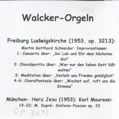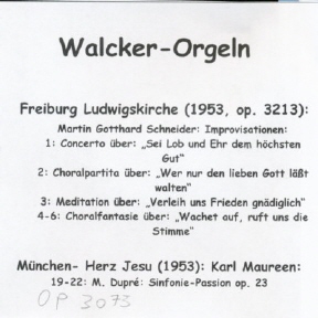 Orgelmusik auf Op 3213 Freiburg und Op 3073
