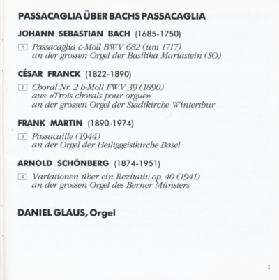 Daniel Glaus spielt Bach, Franck, Schönberg