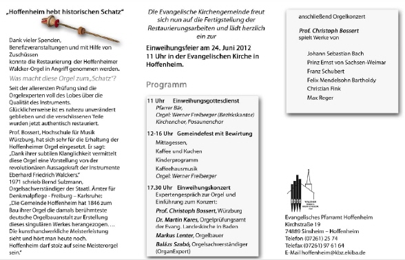 Wiedereinweihung der EFWALCKER-Orgel in Hoffenheim