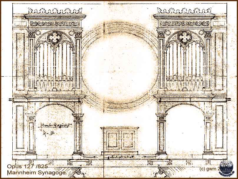 Interessant ist diese Orgel für die Mannheimer Synagoge für mich, besonders durch die hervorragende Darstellung von Dr. Achim Seip in Acta Organologica Band 29, aus der teilweise zitiert wird, und wo neben gesellschaftlichen, jüdisch spezifischen Fragen, besonders auch stilistische Zusammenhänge jener Zeit erklärt werden.