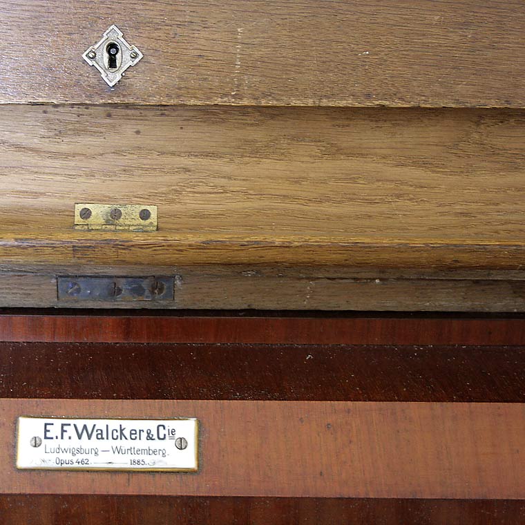 Dieses wunderschöne Örgelchen meldet sich aus Madona, Lettland und ist bisher in unserer Opusliste nur durch den Exporteur aus Hamburg bekannt. Und zwar als Opus 462, Baujahr 1885. Es hat die nachfolgende Disposition. Manual C-f''' 1. Principal 8 2. Bordun 8' 3. Salicional 8' 4. Floete 8' 5. Fugara 4 Pedal 6. Gedeckt 16 Pedalkoppel |