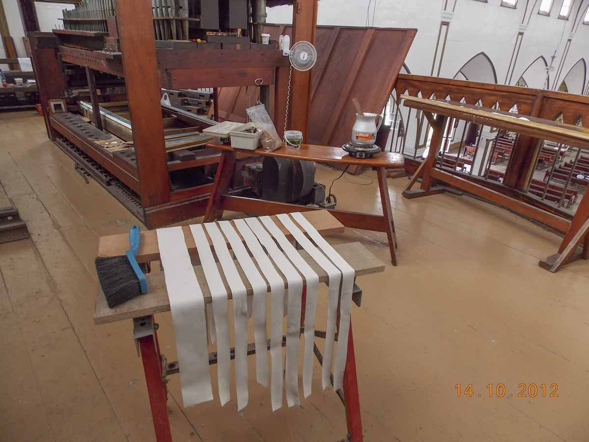 Wir haben eine Spende an Orlando geschickt mit Material zum Beledern des Magazinbalges, der schon seit zwei Jahrzehnten zu Problemen Anlaß gab.