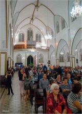 Otros esperaban en las afueras de la iglesia por el fin de la eucaristía, pues esa noche daría un concierto gratuito el reconocido organista alemán Roland Voit.