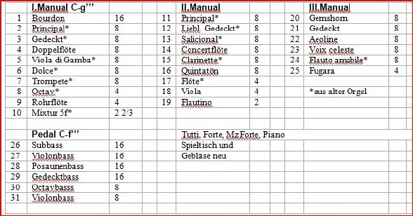 Wie Dr. Seip richtig bemerkte, war hier der Werkstil der dritten Walcker-Generation deutlich geworden, wie das bei Umbauten in Ulm, Frankfurt Paulskirche und vielen weiteren Instrumenten des Vaters geschehen war, weswegen wir diese Disposition mustermäßig hier zeigen wollen: