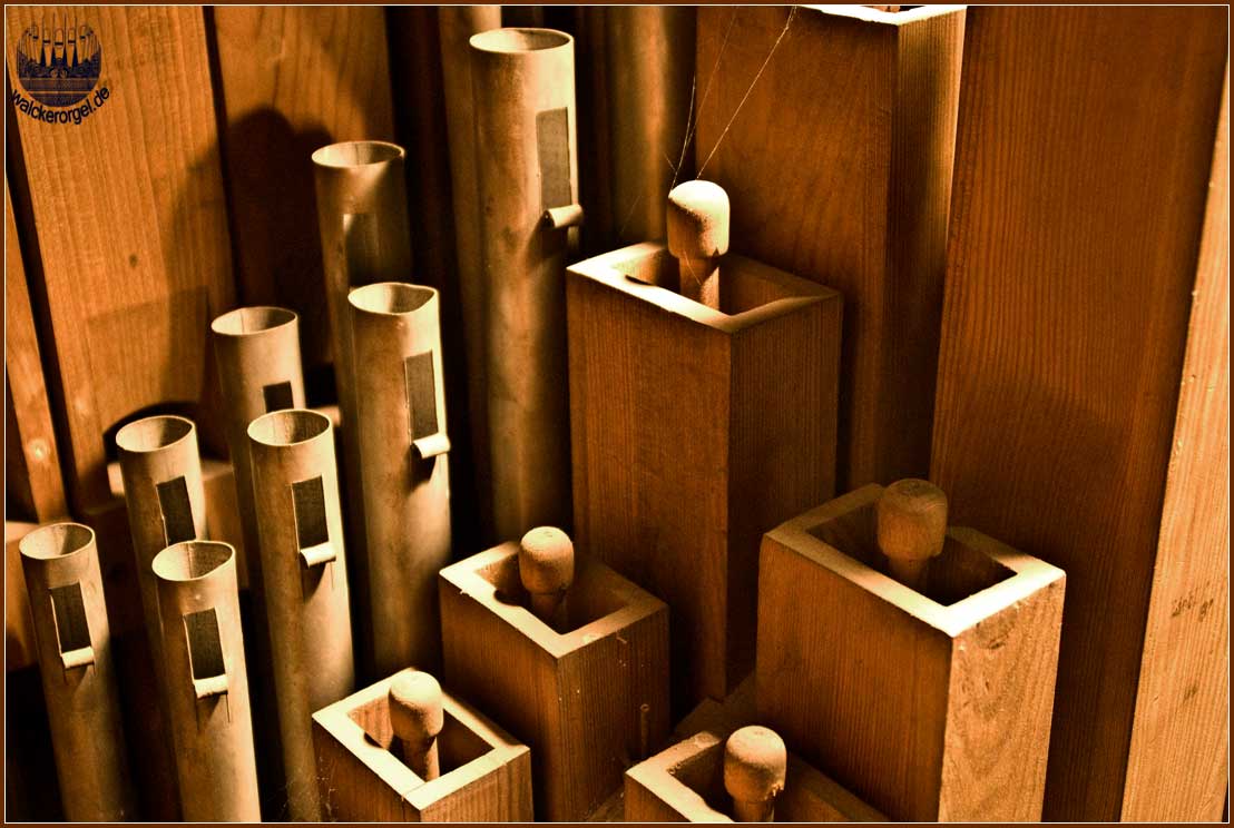 Wie man an den nachfolgenden Bildern sieht, ist hier die technische Anlage und das Pfeifenwerk vorzüglich erhalten. Dank an den wartenden Orgelbauer!