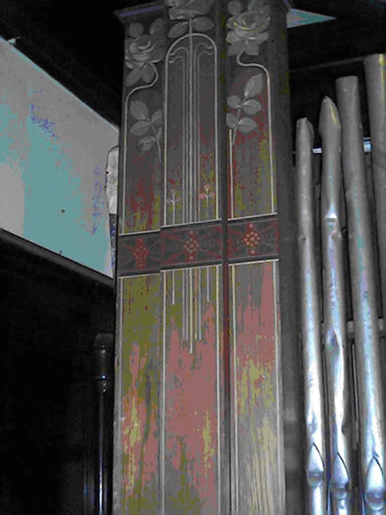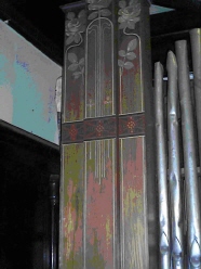 Die jeweils 3 Aussenpfeifen des Bourdon sind bemalt mit arkatitenenähnlichen Laubinfratonen.