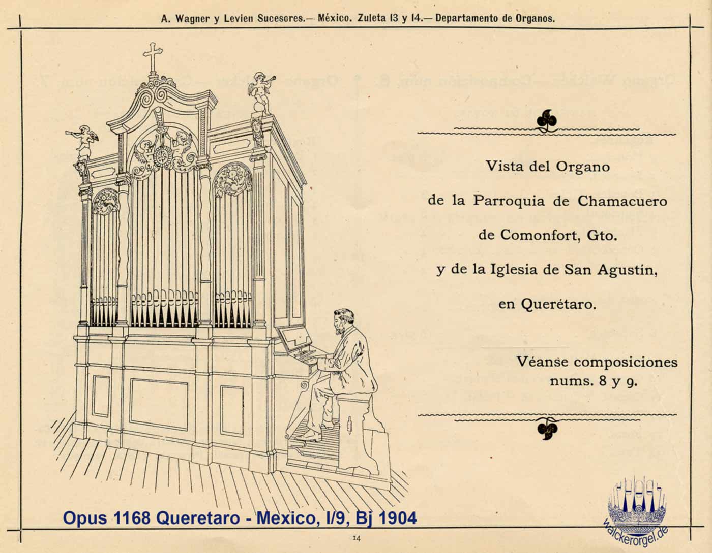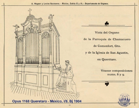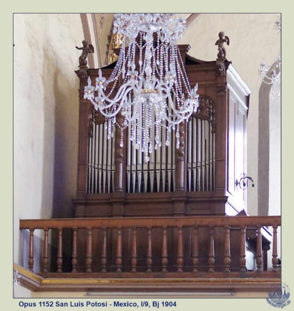 | wir sehen an dem nachfolgendem Bild, das die Orgel in Queretaro darstellt - es ist derselbe Gehäusetyp, nur andere Perspektive. Hier gibt es noch ein kurzes Video auf YOUTUBE |