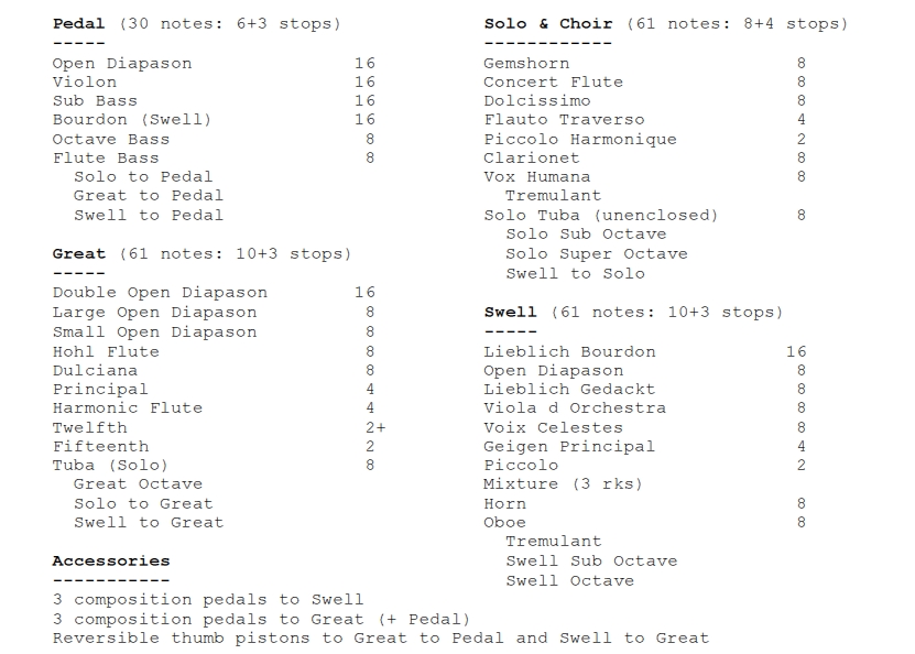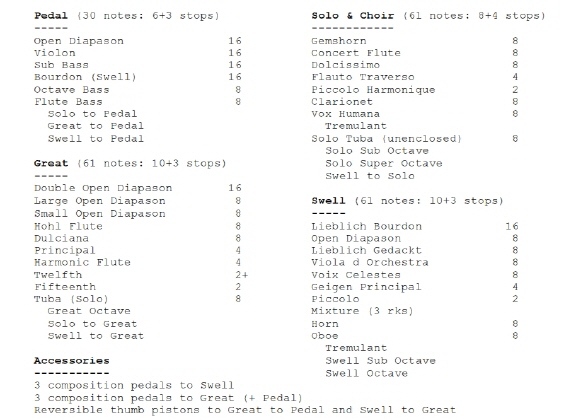 Diese Orgel Opus 1175, mit III/34 aus 1904 steht in der St. Columba-Church in Glasgow und ist weitgehend erhalten.