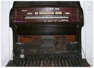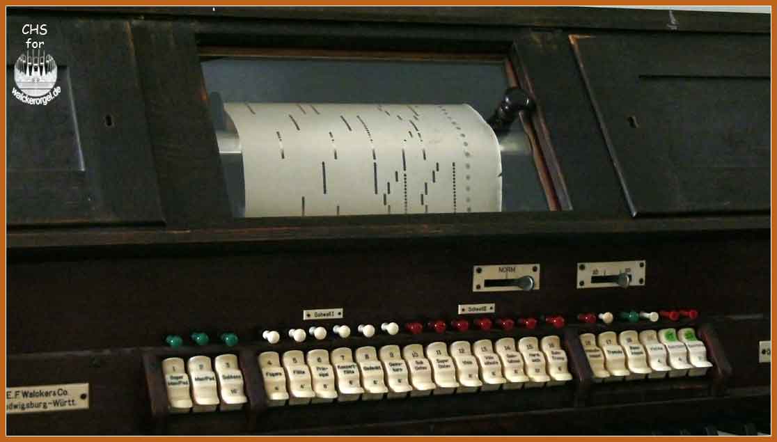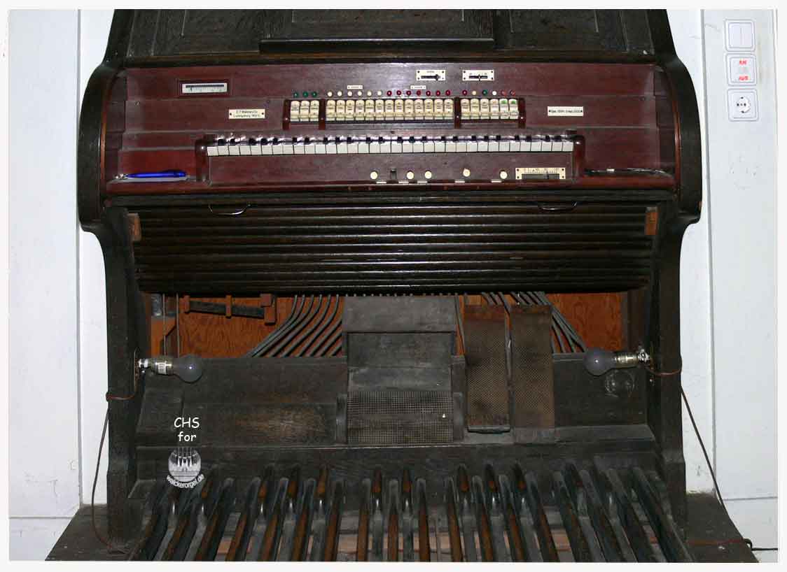 Principal 8 Gemshorn 8 Gedeckt 8 Quintatön 8 Konzertflöte 8 Viola 8 Vox celéste 8 Flöte 4 Fugara 4 Harm. aetheria 3f Solo Trompete 8