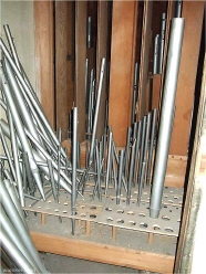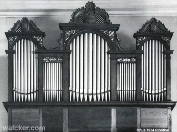 | Die Walcker-Orgel Opus 1934 in Rinnthal, Bj 1920, wurde vom Landesdenkmalpflege in Mainz entdeckt. Das Werk wurde 1920 mit pneumatischen Hängebälgchen gebaut, wie die von uns restaurierte Walcker-Orgel in Kairo. | In Rinnthal, so zeugt ein Blatt auf dem Spieltisch, scheint man bis 1964 noch am Spieltisch tätig gewesen zu sein, dann erfolgte die Dornröschenifizierung - in der Form, dass man Pfeifenwerk egaliter behandelte und Lautsprecher der E-Orgel ins Walckersche Gehäuse plazierte. Die nebenstehende Disposition verspricht höchste spätromantische Sublimierung. gerhard@walcker.com |