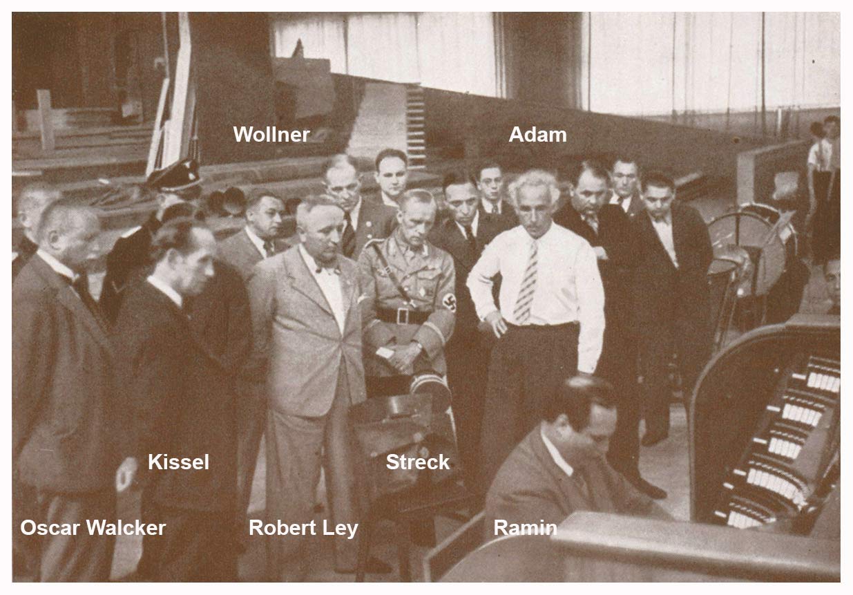 Dieses historische Bild der Abnahme der Walcker-Orgel Opus 2500 (V/214 ep) Nürnberg-Reichsparteitag, im Oktober 1936 durch den Zweckverband der Reichsparteitage, begleitet eine amüsante Anekdote, die mir Heinz Wunderlich bei einem Besuch erzählte. Wunderlich selbst bekam sie von seinem Lehrer Straube zu hören. Und so kann man sich vorstellen, dass mitten im dunkelsten Naziterror herzlich und hinter vorgehaltener Hand von Organisten über das Kulturgehabe der primitiven Parteibonzen gelacht wurde.