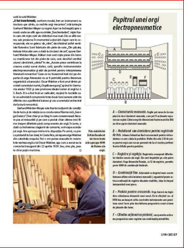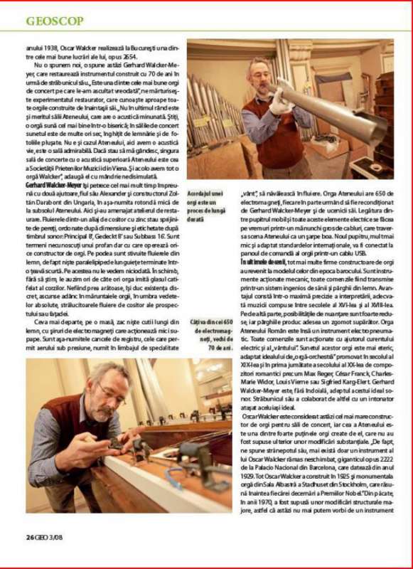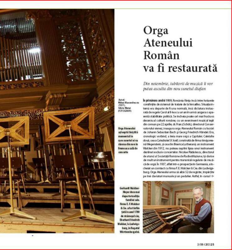 Hervorragendes Konzert von Prof. Dr. Franz Metz an der Walcker-Orgel im Atheneum in Bukarest gespielt am 17.Feb.: Dieses Konzert wurde zweifach aufgezeichnet und wir werden sowohl eine CD davon herausbringen sowie eine vom TELEVISIO gefertigte DVD. Die Orgel im Bukarester Atheneum stellt sowohl klanglich wie orgelbautechnisch die einzige vollständig erhaltene Oscar Walcker-Konzertsaalorgel dar, die authentisches Klanggut der Orgelbewegung und damit auch Klangvorstellungen des gereiften Oscar Walcker in sich birgt.