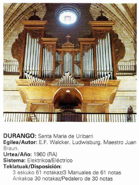 20 Prestant 4 21 Nazardo 2 2/3 22 Flautino 2 23 Basson (durchschlagend) 16 24 Trompeta armónica 8 25 Clarin 4 Tremolo Pedal C-f' = 30 Noten 26 Contrabajo 16 27 Subbajo 16 28 Contrabajo 8 29 Coral bajo 4 30 Gran Bombarda (durchschl) 16 31 Trompeta 8 32 Clarin 4
