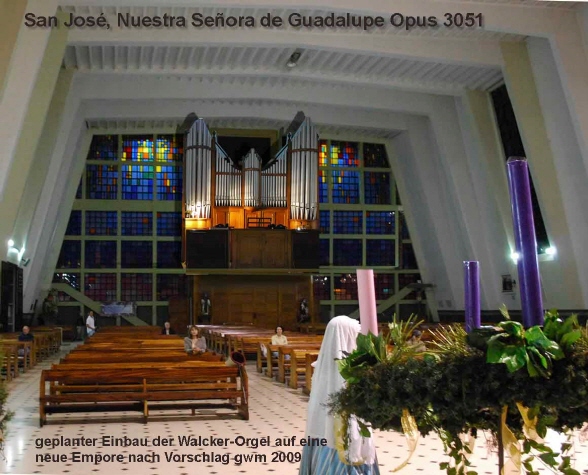 Gebaut 1952 mit 20 Register auf elektropneumatische Kegelladen in die Kath. Kirche Ntra. Sra. de Guadalupe stellt diese Orgel ein ganz interessanten Typ dar, der mit 12 Achtfüssern kaum davon eine Ahnung hinterlässt, dass es gerade in Germanien sehr neobarock zugeht.