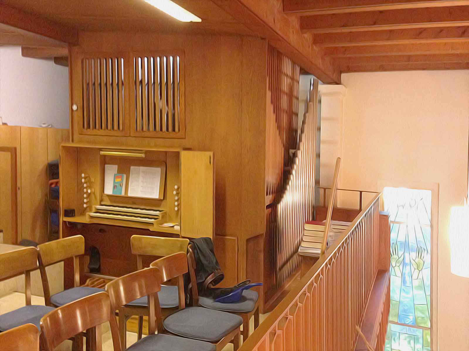 I.Manual HW C-g''' 1 Hohlflöte 8 2 Prinzipal 4 3 Sesquialter 2f 4 Sifflöte 1 Tremulant |