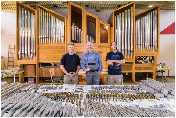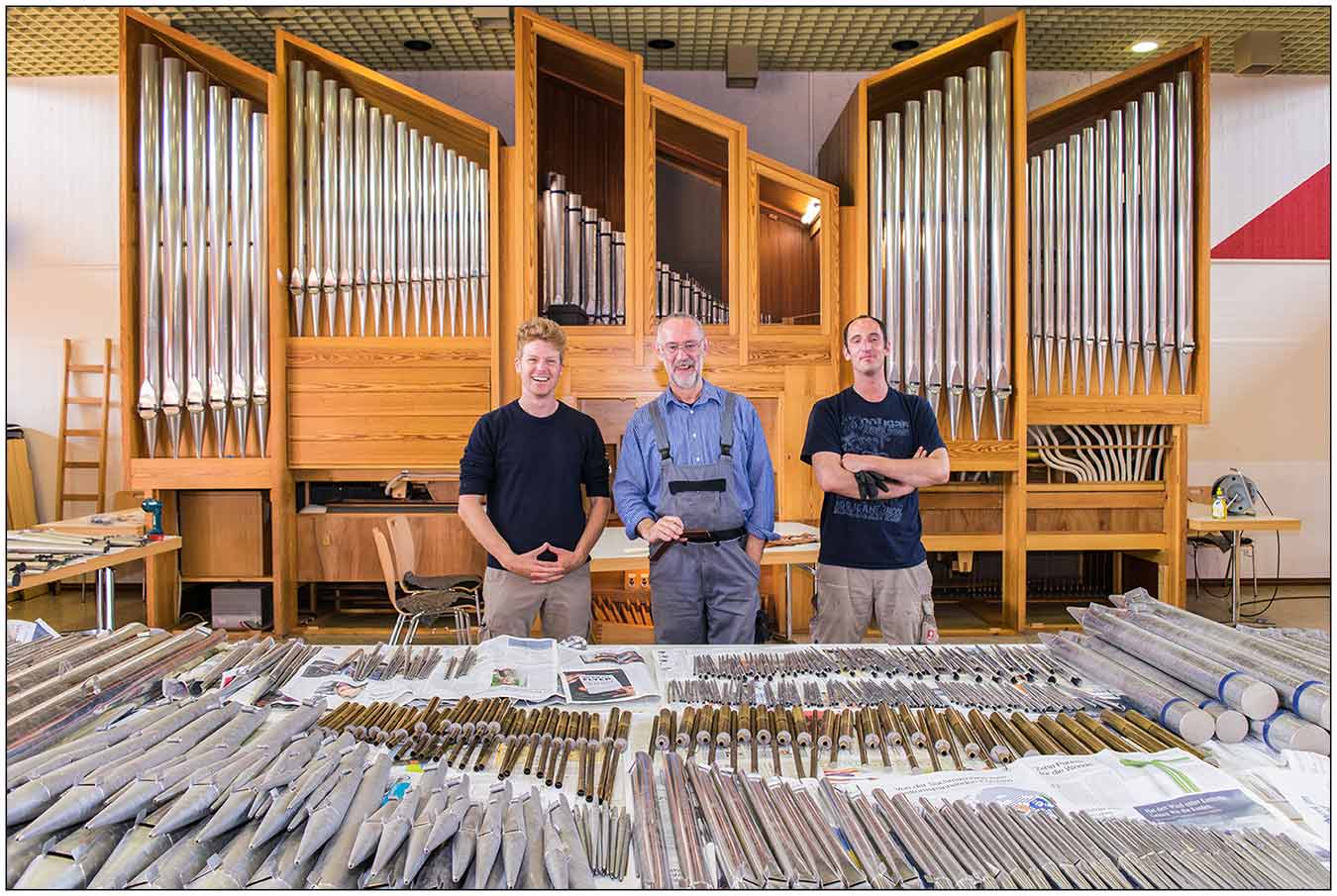 Eine Gruppe von Organisten aus Quebec/Canada besucht derzeit Europa und seine Orgeln. Klar, dass Walcker in ihrem Terminkalender stand. Am Mittwoch den 30.Juli war es soweit. Simon Abbott kam nach Neuwied, Blindenschule, wo wir derzeit an der klanglichen Überarbeitung der Walcker-Orgel beschäftigt sind. Über eine Stunde dauerte das Interview. Auch das eine interessante Erfahrung. |