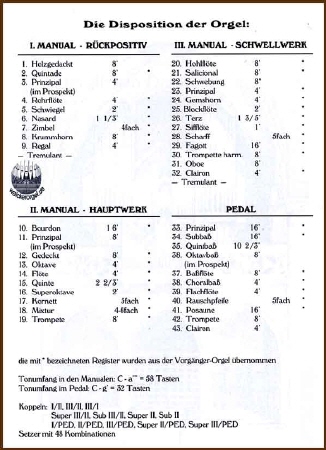Eine ganz großartig restaurierte Walcker-Orgel steht im saarländischen Mimbach Op.170, Bj 1860. Eine dieser Orgel würdige CD, bespielt von Christian Brembeck gibt es bei JPC, wobei man bei der Vorstellung unter diesem Link einzelne Tracks anhören kann. Sehr gelungen, sehr angemessener Preis. Ein wunderbarer Unterschied auch zu der Saarwellinger Orgel, wobei die Mimbacher doch mit sehr begrenzter Registerzahl punkten kann. |
