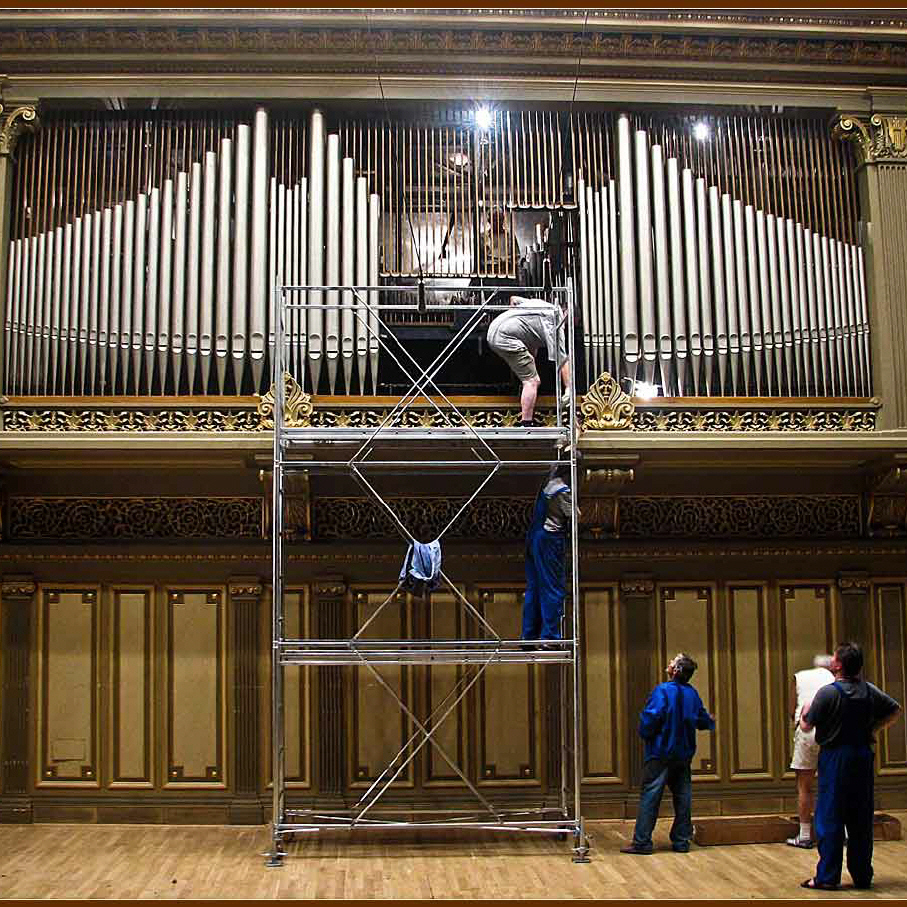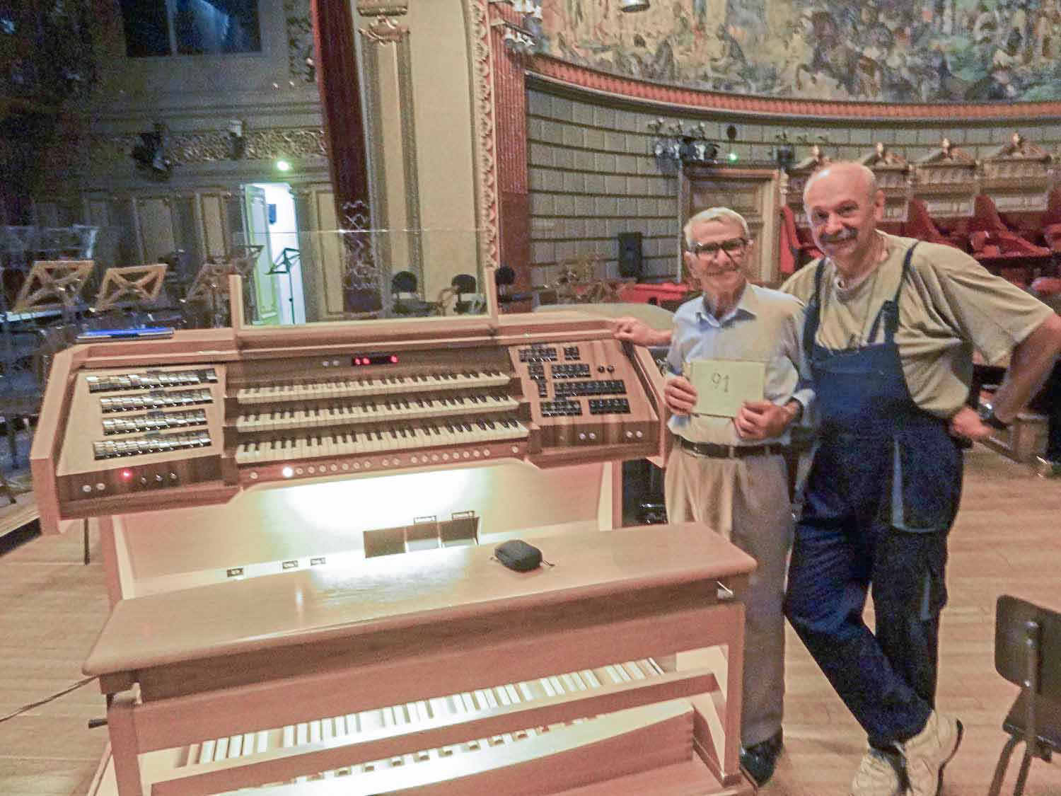 diese beiden Helfer: Mihai Georsoi und der gerade 91 Jahre alt gewordene Schiopescu, der diese Orgel rund 50 Jahre betreut hat, sind gewissermassen die fleischgewordene Orgelsubstanz dieses Hauses. Bemerkt man in oberster Orgeletage ein fehlendes Stimmwerkzeug und ruft: das mittlere Horn fehlt! Dann wuselt der 91Jährige ungefragt los und in 3 Minuten ist er oben mit Stimmhorn und Neugier angelangt.