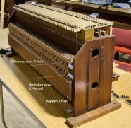 The work undertaken included photographing every part before the organ was taken apart. Couldn’t have had the question at the end “now where does this piece fit?” Cleaning, replacing damaged parts, restoring other damaged parts and tuning followed. We learned so much from Gerhard and Alexander, who were willing to share their knowledge and expertise.