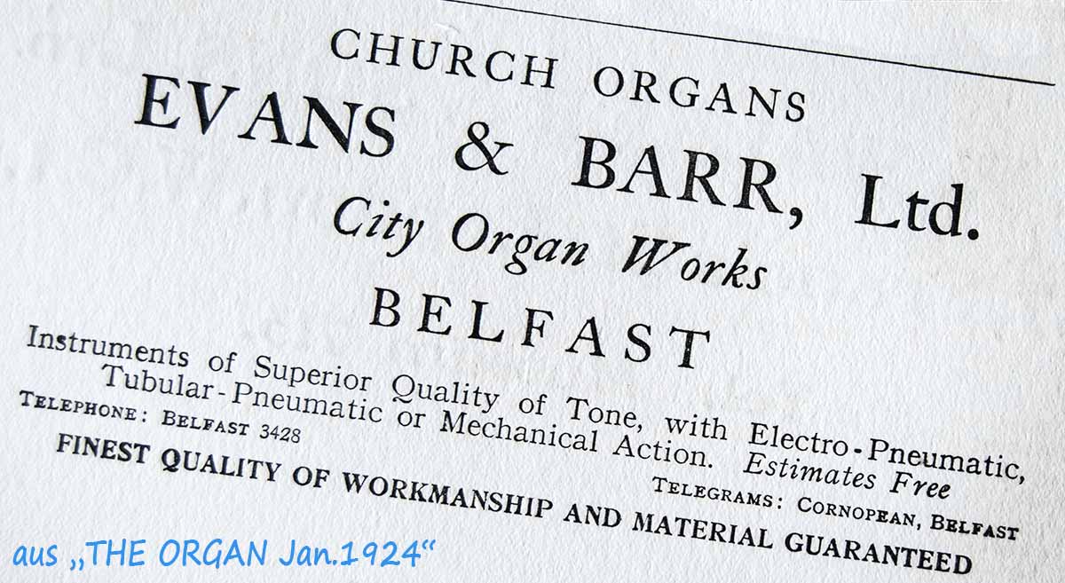 Seventh and eighth generation of the family firm, they set about the task of restoring the Evans and Barr organ which has been situated in the Church since 1926.