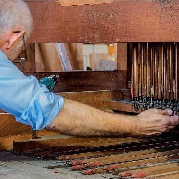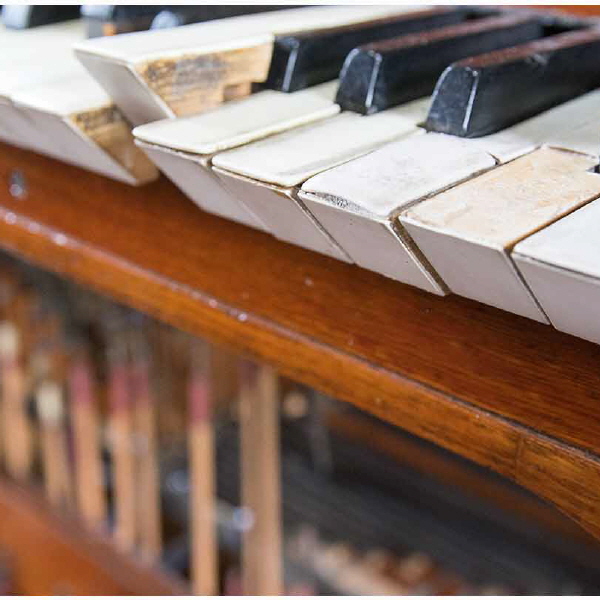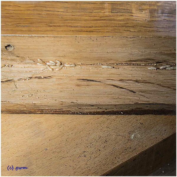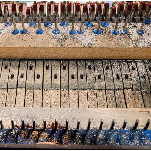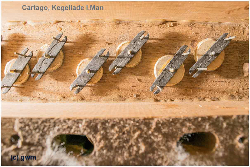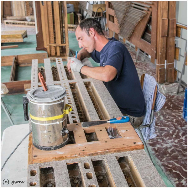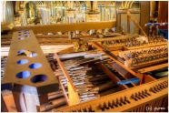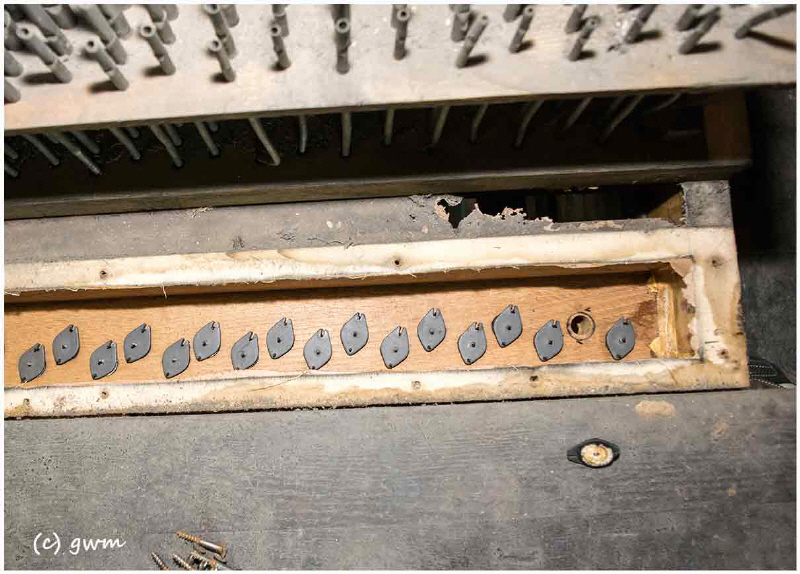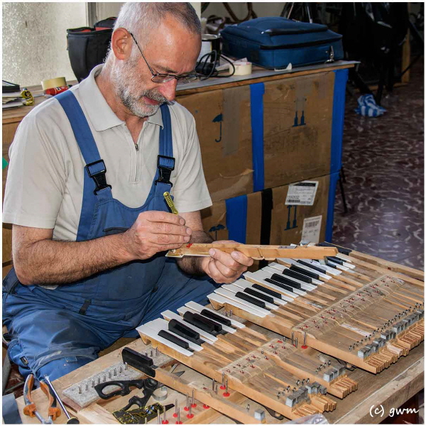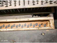 Beim genauen Hinsehen haben wir bei einer einzigen Taste g' (die bei der unten ablaufenden Diashow zu sehen ist) über 12 lebendige Holzwürmer entdeckt, die sich über die "Grand Restauration", die vor wenigen Jahren stattfand, leider nicht ganz totgelacht haben.