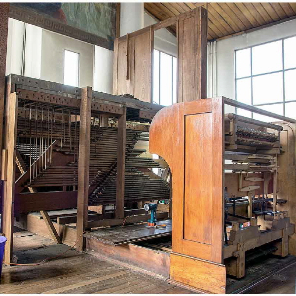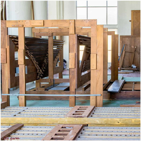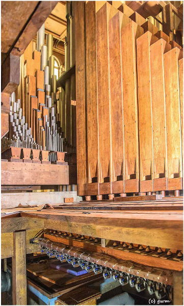 In Wirklichkeit hat sich der Holzwurm und Comejean in dramatischer Weise an der Königin vergangen, bis man endlich die statische Fragwürdigkeit des Holzpodestes, auf dem die Orgel stand, zur Diskussion stellte.