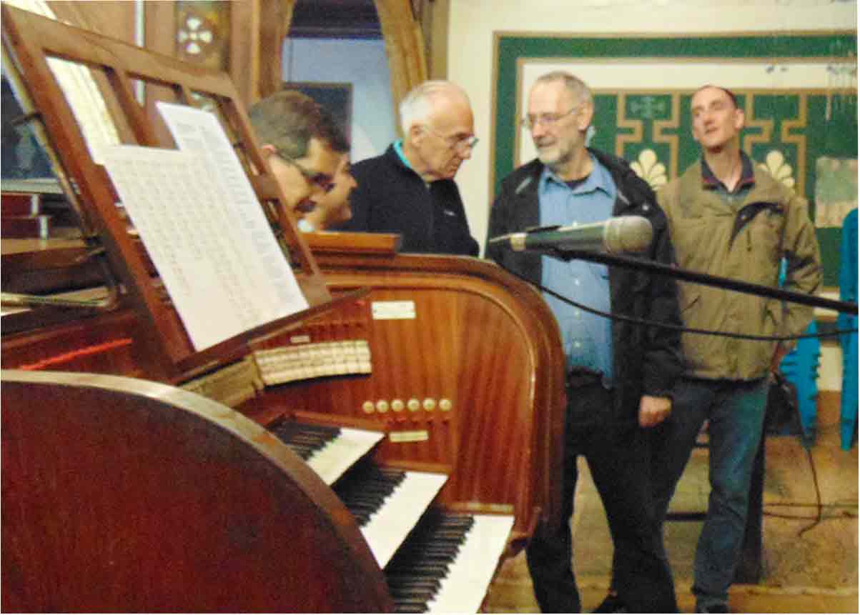 in der Basilica in Cartago. Von rechts nach links: Berater Hans Miller, Pfarrer Rector Francisco Arias Salguero, Admin Manuel de Jesús Vega Calderón, Organist Eduardo Álvarez Marin,