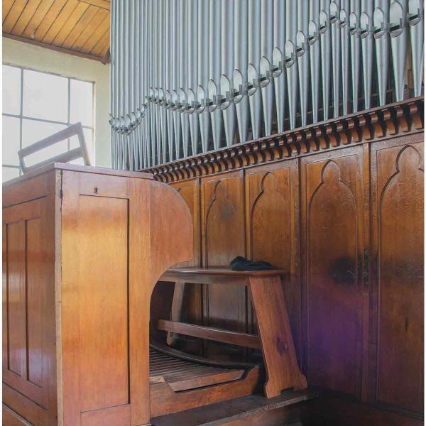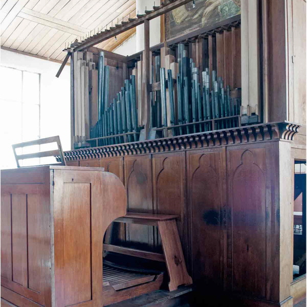 1. Principal 16’ 2. Diapason 8’ 3. Flauta 8’ 4. Octava 4’ 5. Piccolo 2’ 6. Mixtur 4-6fach 7. Trompeta 8’ |