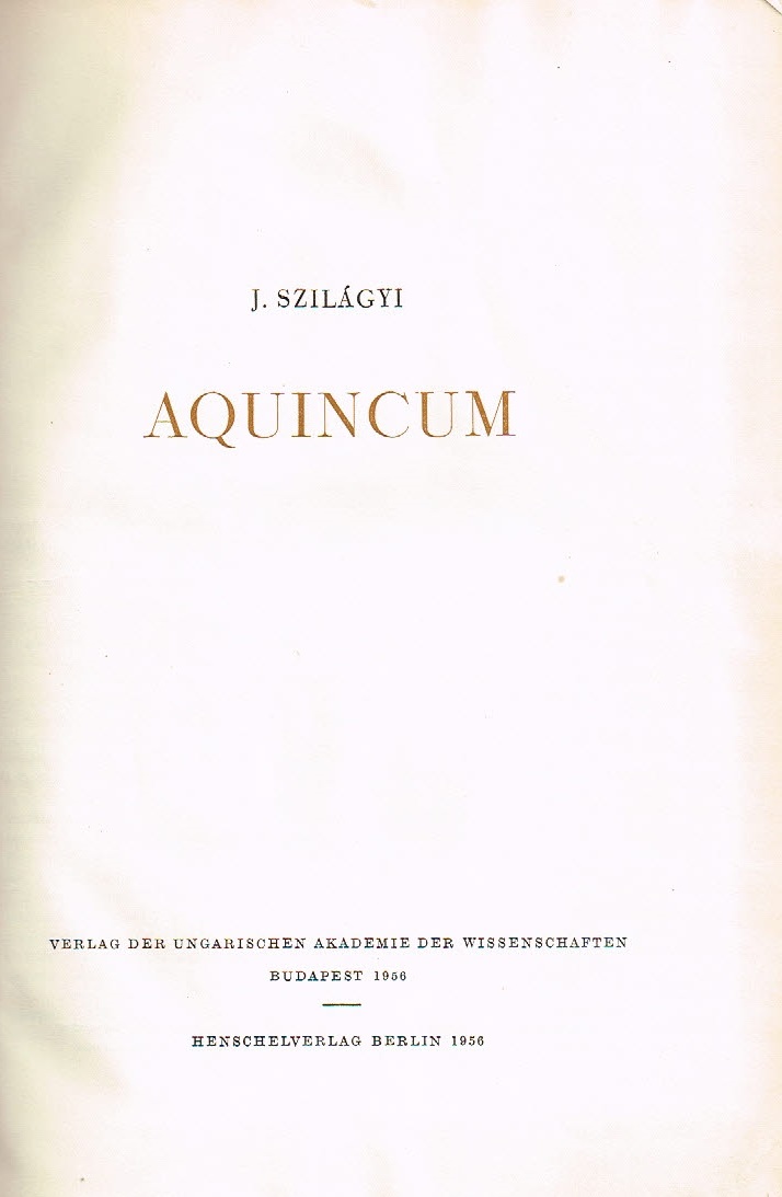 J. Szilàgyi "Aquincum", Verlag d. Ungarischen Akademie der Wissenschaften, 1956, deutsch, beschreibt u.a. auch das Gelände und div. Ausgrabungen, 166 Seiten, 2x34 Bildtafeln |