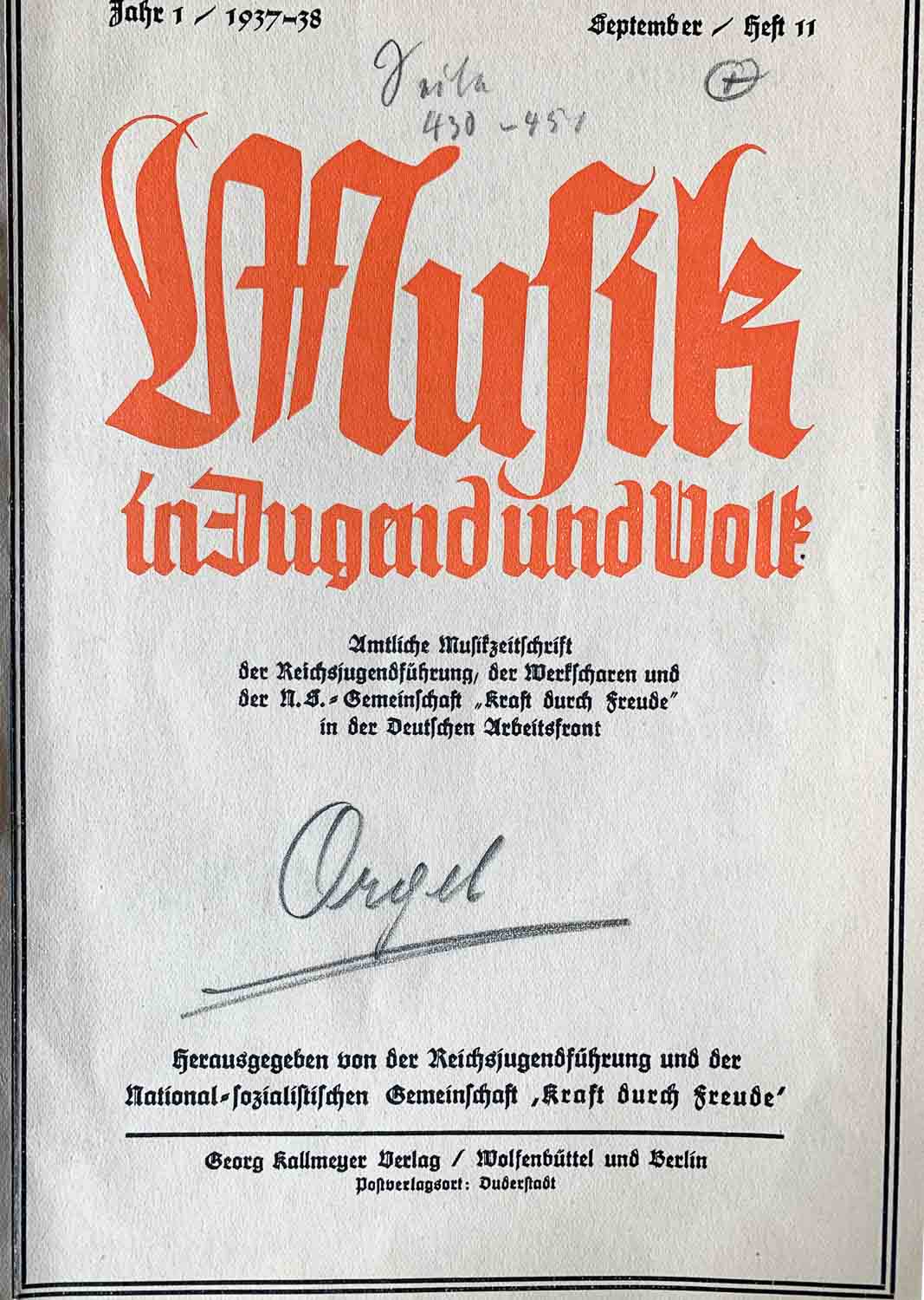Musik in Jugend und Volk, 1937-38 |