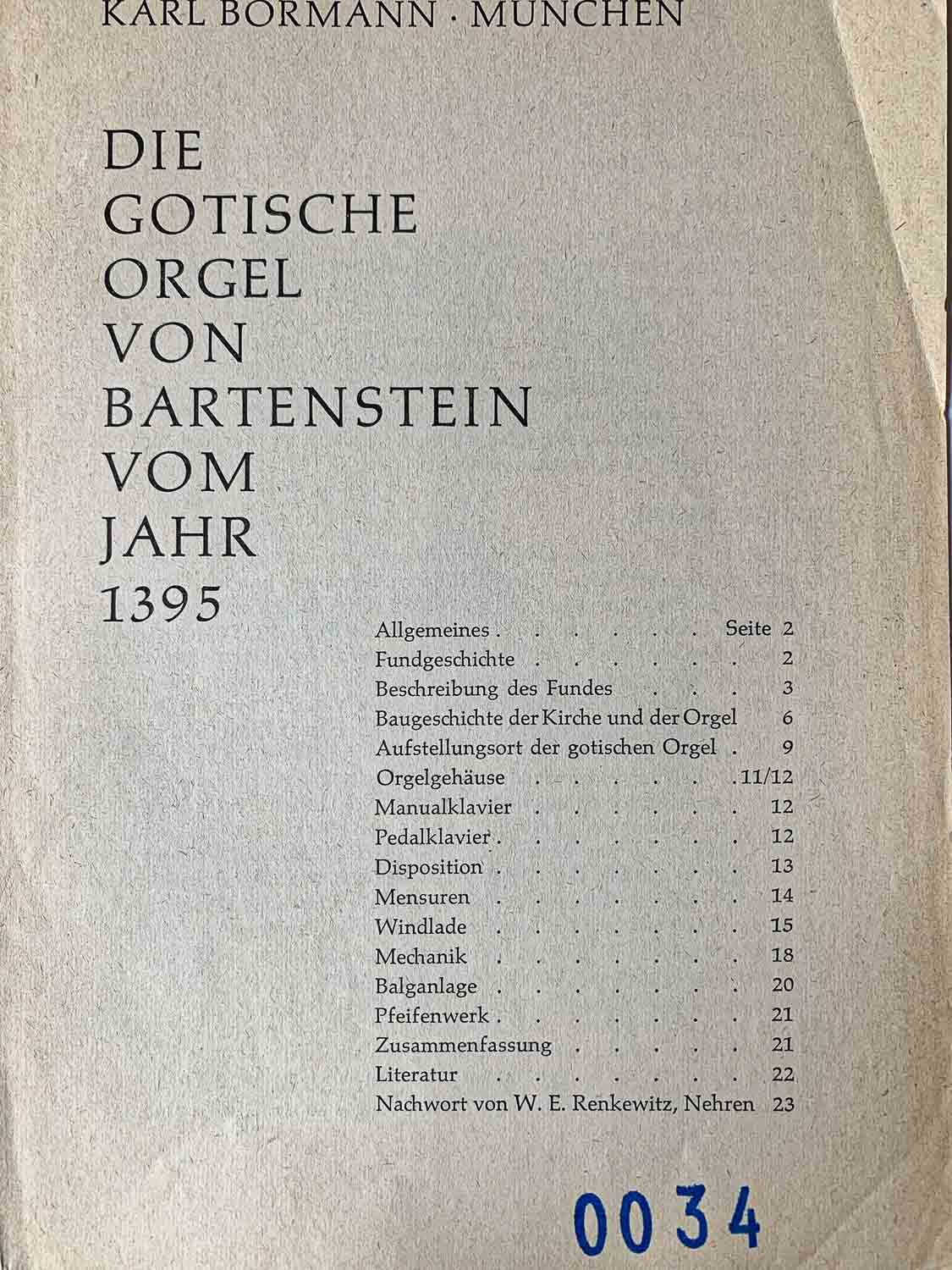 Die Gotische Orgel von Bartenstein vom Jahr 1395 , 24 Seiten, Karl Bormann |