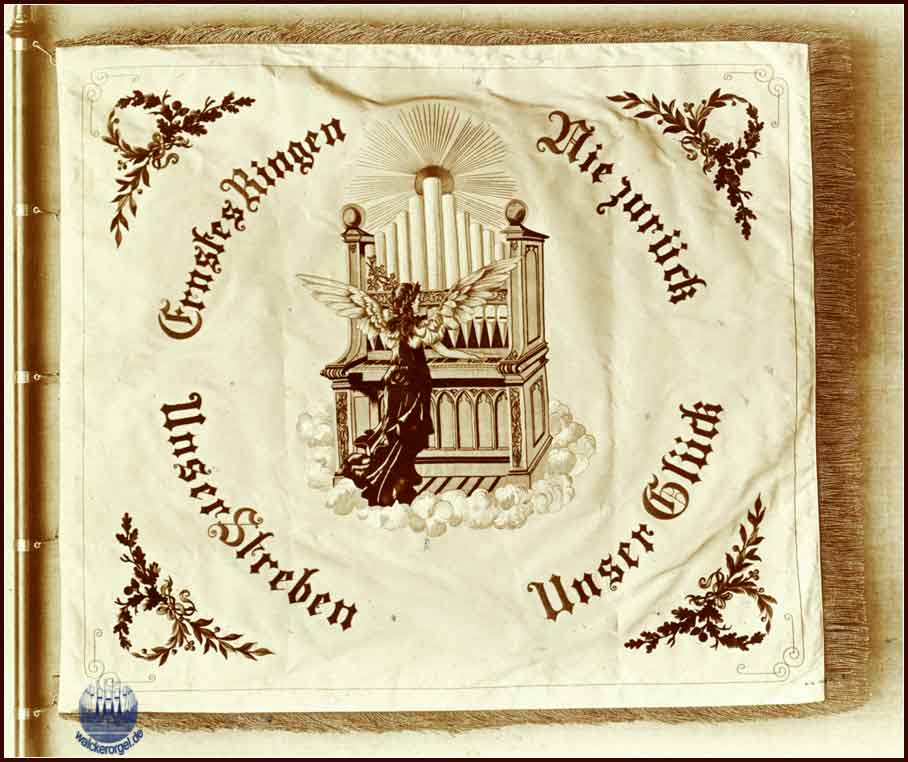 immer eingedenk, dass diese Fahne beim Fototermin im Jahre 1902 zur tausendsten Orgel nach Danzig im Kreise von Oscar Walcker, Richard Walcker, Heinrich Walcker, Carl Walcker und Eberhard Walcker mittig aufgestellt ihre ganze Symbolkraft entfalten konnte.