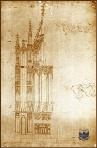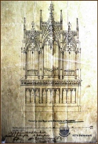 Dekor: Maßwerk aus Frei-und Vierpaß, Fischblasen, krabben, besondere Form die Zinnengotik mit Spitzbogenfe3ldern und waagrechtem Abschluß durch Zinnenkranz