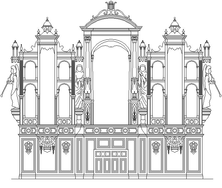 Dekor: Laub-Rankenschnitzerei, Renaissanceornamente, Vasen, Pyramiden