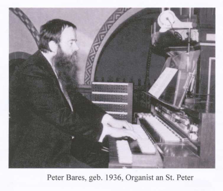 Der Komponist und Organist Peter Bares ist heute nachmittag gestorben. Diese traurige Mitteilung wurde mir unmittelbar nach meiner Ankunft aus Kolumbien von Reimund Böhmig übermittelt. Es gibt kaum einen Organisten, der so leidenschaftlich und begeistert an der Orgel gewirkt hat wie Peter Bares. Mit den beginnenden 1970er Jahren trat Peter Bares in den Gestaltungshorizont der Firma Walcker, die Ungeheures ihm verdankt. Mit Bares und Sinzig wurde eine Ära eingeleitet, die Hoffnungen für den überkommenen Orgelbau schürte. Allein dieser Umstand färbte eine recht einfaltslose Orgelzeit um in hellen, expressiven Farben. Dafür danken wir ihm. Wir trauern um einen großen Künstler. Gerhard Walcker-Mayer |