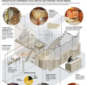 | Die Zeitung "La Nación" San José, Costa Rica, hat am Sonntag, den 01.März, einen umfassenden Artikel über die Schäden an der Orgel in Basilika Cartago gebracht, den wir hier teilweise wiedergeben. Dieser Artikel befindet sich auf der Seite der Zeitung "La Nacion" mit vielen weiteren Bildern aus der Orgel. Das Bild links unten ist aus einem Beitrag der Zeitung eingefügt, der über den Verlust der Orgeln in Costa Rica berichtet. |