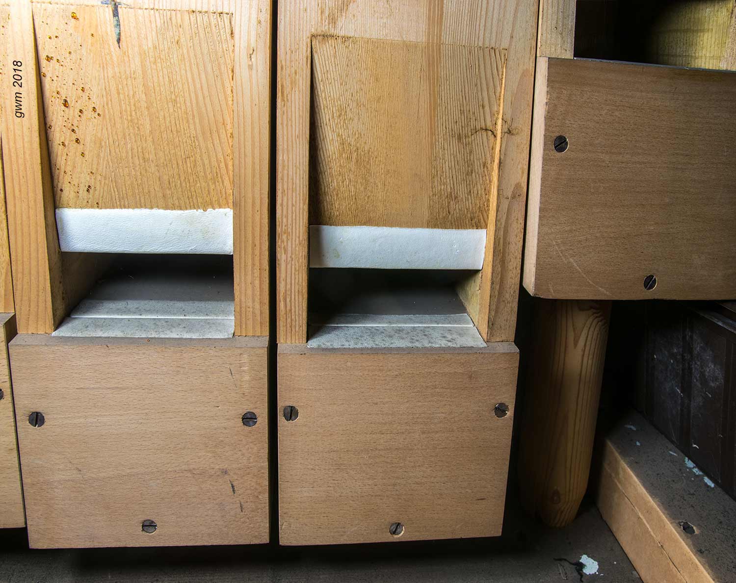 Erstaunt haben uns zwei Kirchen (in Bellstedt und Bliederstedt) mit ihren fantastischen Altären aus dem 14. oder 15 JH. und ihren kleinen Kirchen im Alter von 900-1100 Jahren. Darin fanden wir ansprechende Orgeln, die aber etwas außerhalb der alljährlichen Wartungsrhythmen geraten sind und so ihrer Genesung harren. Umwerfend war der Eindruck den die Walcker-Orgel in Beichlingen auf mich hinterlassen hat, die im Pedal eine Hängebalglade und in den Manualen Taschenladen besitzt. Und die deswegen so betörend auf uns wirkte, weil das Leder der Ventile so prächtig unbefleckt erschien, als ob es geradewegs aus der Fabrik gekommen wäre.