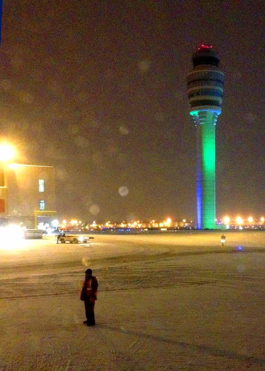 Zu schnell haben wir uns von America verabschiedet. Nach einem "winterstorm" und anschliessendem Eisregen, ging auf dem Airport Atlanta nichts mehr. Auf dem Foto links sieht man unsere Ausgangsstellung im Flieger nach Charlotte/NC, der in diesem Moment mit einer heissen Brühe abgespritzt wird. Es ist einer der wenigen Flugzeuge, die überhaupt noch von Atlanta-Hartfield, dem meistbeflogenem Flughafen der Welt, starten darf. Zweieinhalb Stunden sitzen wir in dieser Sardinenbüchse. Gegen 22Uhr dann landen wir endlich in Charlotte, Stunden nachdem unser connected flight nach Frankfort bereits ins schwarzgrüne Hessen abgetaucht war. Chaos im ganzen Land, während wir gemütlich mit einem der besten Taxidriver, des Südens, they called him "Victor the Indian", auf eisglatter Fahrbahn ins nächste Hotel der Stadt chauffiert werden. Dort in der Nähe gibt es "double cheesburger" mit coffee und coke. Die sommerbereiften der meisten Autos zeigen nahezu künstlerische Artistik auf den breiten Highways von Charlotte. Wir liegen bald in einem der Betten von "Extended Stay America" um morgens gegen 9Uhr besorgten Walcker.com-Lesern mitteilen zu können, dass alles in guter Ordnung ist, - aber eben- Mission still not accomplished ist.... "sorry George!"