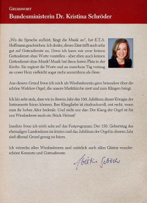 Das Kirchenvolk lässt sich also nicht nur im Wahlkampf verdummen, sondern wird mit historischen Wertungen manipuliert, die wir heute nur noch als massives Lügengespinst entlarven können. Ich denke Frau Ministerin Schröder hat in diesem Grusswort ein wesentliches Element der zwischenmenschlichen Kommunikation herauskristallisiert. Auch Nietzsche hat mehr von der Musik als von der Sprache gehalten, indem er dichtete: "Sie hätte singen sollen, diese neue Seele, nicht reden...". Diese Erkenntnis, so ganz am Rande, den Politikern ins Stammbuch geschrieben: "singt Brüder(le)!, singt !!" gewalcker@t-online.de |